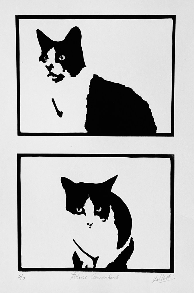 A black and white print of one of my feline family members. A beautiful furry softy that kept us all sane during COVID lockdowns. The connections we created in the online world were amazing: sharing our feline friends, laughing at their antics and trying to keep ourselves mentally alert.