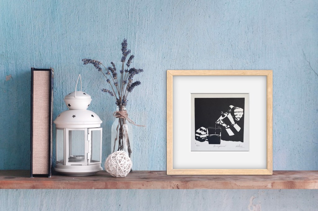 This is the LAST in this series of prints. It is framed in a natural wood frame and ready to hang.